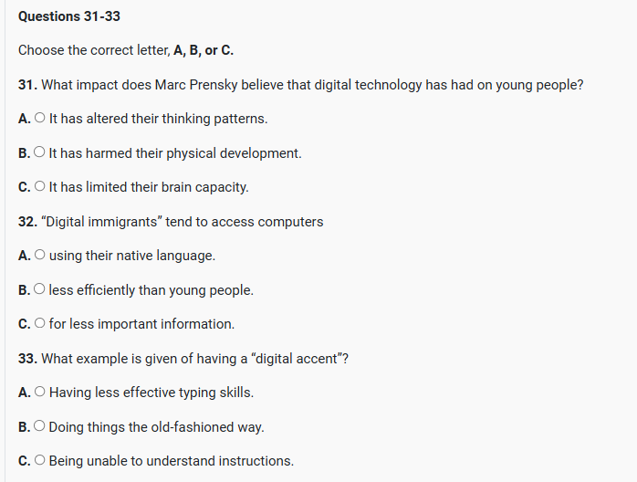| IELTS listening Impact of Digital Technology on Education listening practice test has 10 questions belongs to the Education & Technology subject.. |