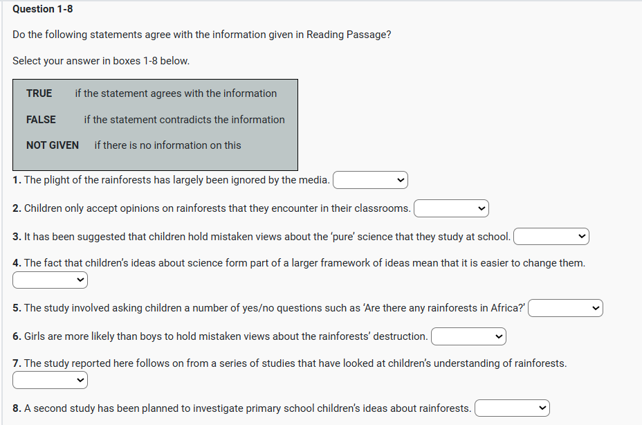 | IELTS Reading Children’s ideas about the rainforests and the implications for course design reading practice test has 10 questions belongs to 🌳 Education & Environment subject.. |