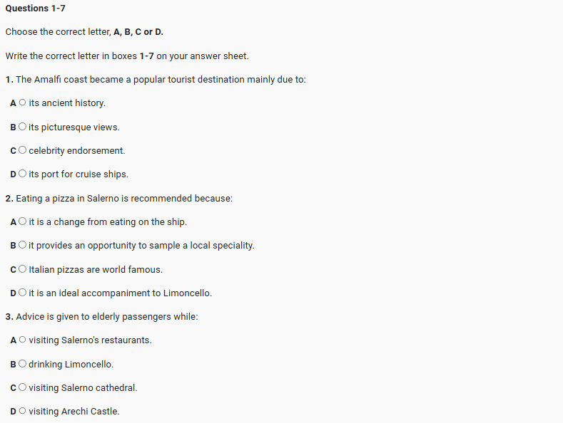 IELTS READING Enjoy the Beauty of Italy’s Amalfi Coast with a Coastal Cruise Holiday Reading Practice Test has 10 Questions belongs to the Travel & Tourism subject.. |