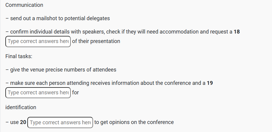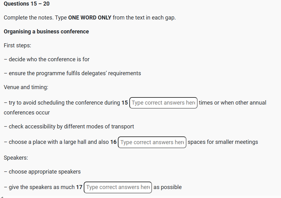 IELTS READING How to organise a successful business conference Reading Practice Test has 10 Questions belongs to the Business / Work & Careers subject.. |