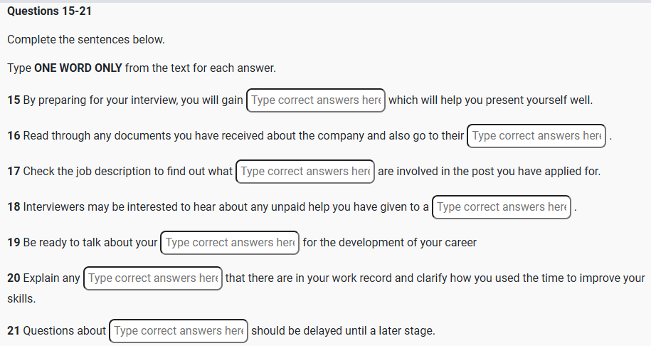 IELTS READING How to prepare for an interview reading Practice Test has 10 Questions belong to the Work and Careers subject.. |