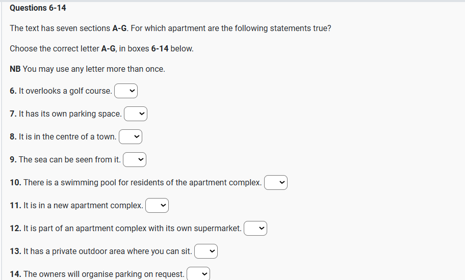 IELTS READING – HOLIDAY APARTMENTS TO LET S8GT2