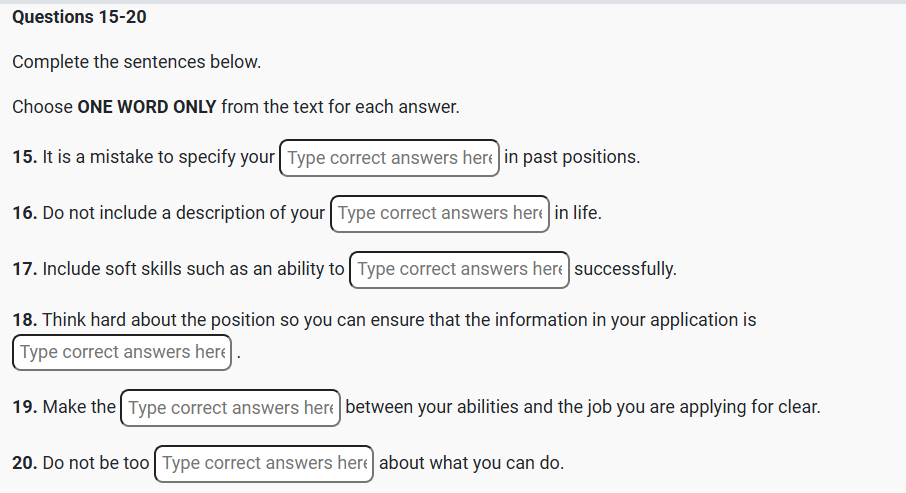 IELTS READING Mistakes when applying for a job Reading Practice Test has 10 Questions belongs to Employment and Career Advice subject.. |