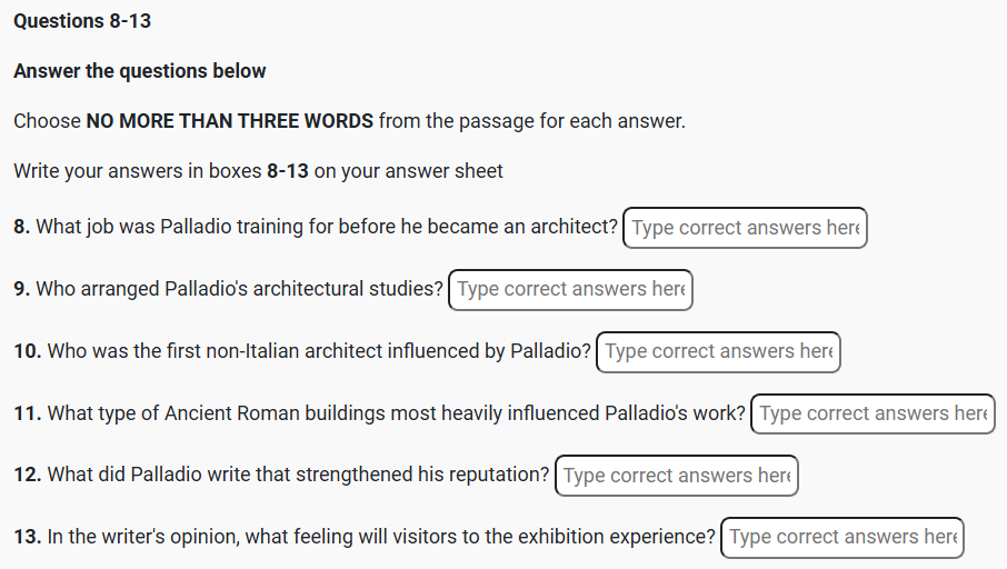 IELTS Reading Andrea Palladio: Italian architect reading practice test has 10 questions belongs to Architecture & Biography subject..