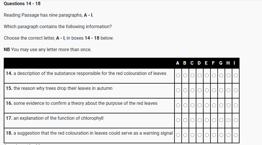 IELTS SIMULATOR ONLINE IELTS READING EASY DEMO - Autumn leaves Canadian writer Jay Ingram investigates the mystery of why leaves turn red in the fall