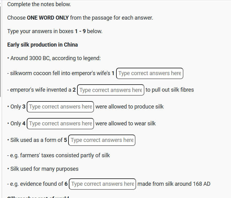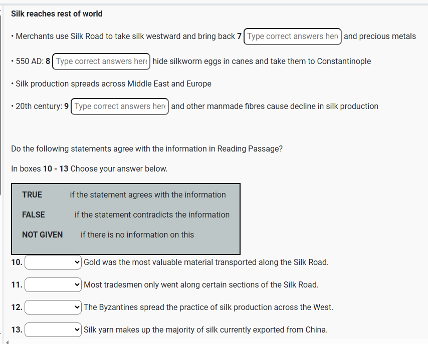IELTS READING The story of silk reading practice test has 10 questions belongs to Trade & Culture subject..