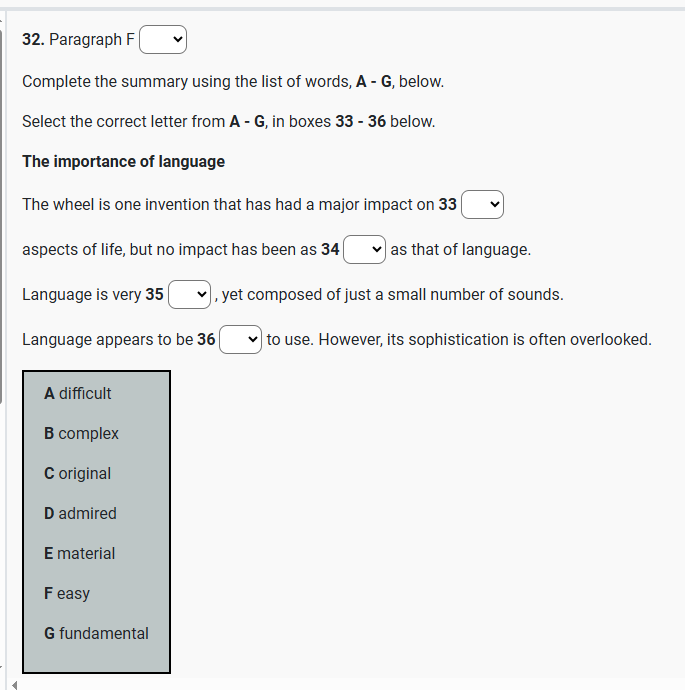 B. But language is foremost not just because it came first. Q28 In its own right it is a tool of extraordinary Q35 sophistication, yet based on an idea of ingenious simplicity : ‘this marvellous invention of composing out of twenty-five or thirty sounds that infinite variety of expressions which, whilst having in themselves no likeness to what is in our mind, allow us to disclose to others its whole secret, and to make known to those who cannot penetrate it all that we imagine, and all the various stirrings of our soul’. Q38 This was how, in 1660, the renowned French grammarians of the Port-Royal abbey near Versailles distilled the essence of language, and no one since has celebrated more eloquently the magnitude of its achievement. Even so, there is just one flaw in all these hymns of praise, for the homage to languages unique accomplishment conceals a simple yet critical incongruity. Language is mankind s greatest invention – except, of course, that it was never invented. This apparent paradox is at the core of our fascination with language, and it holds many of its secrets.