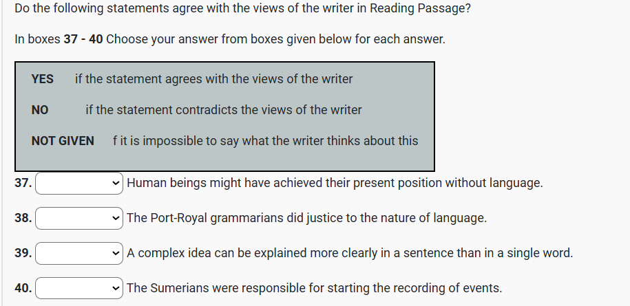 Q39 A complex idea can be explained more clearly in a sentence than in a single word. NOT GIVEN