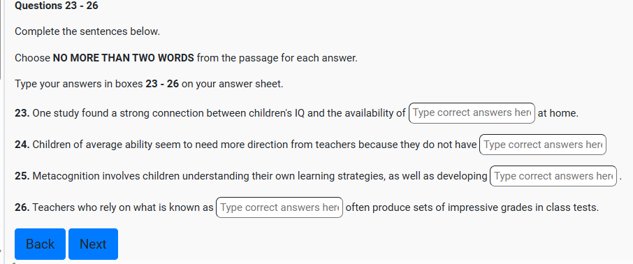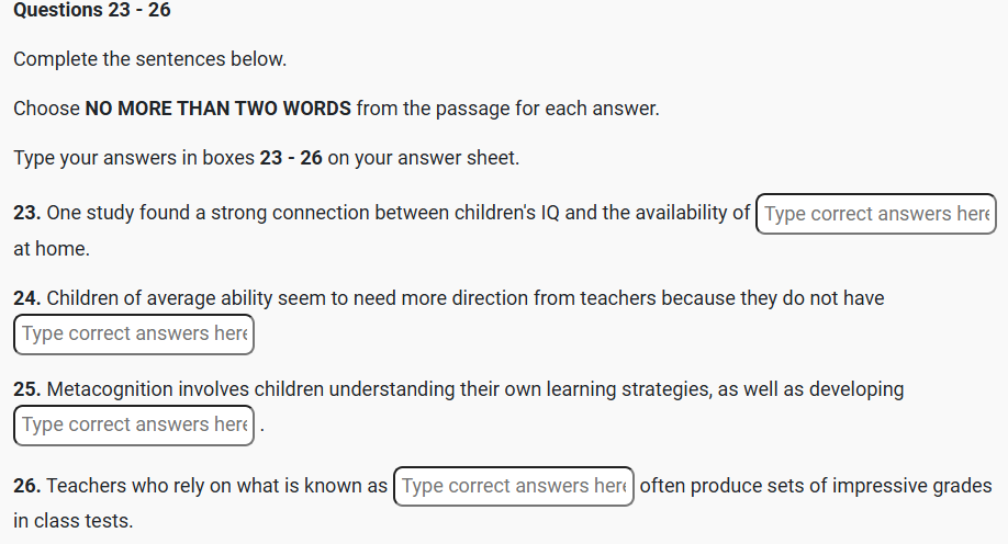 | IELTS READING Gifted children and learning listening practice test has 10 questions belongs to Education / Psychology subject.. |