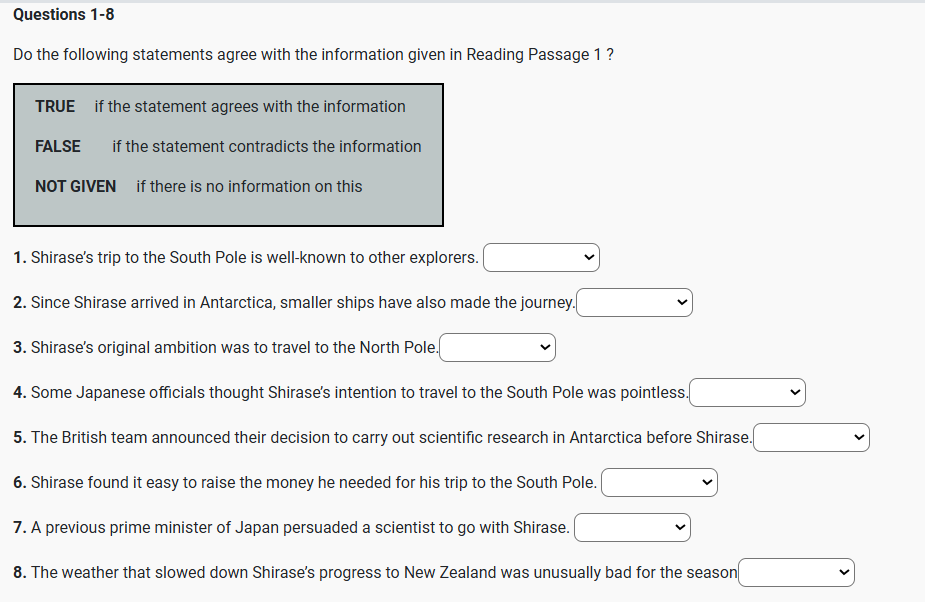 Q5 The British team announced their decision to carry out scientific research in Antarctica before Shirase. NOT GIVEN