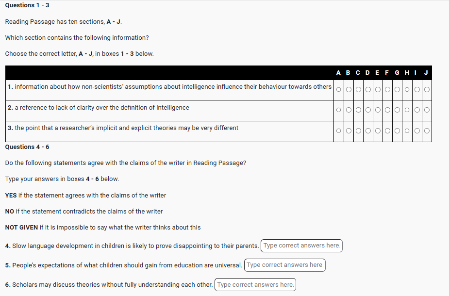 | IELTS Reading The concept of intelligence reading practice test has 10 questions belongs to 🧠 Education & Psychology subjects.. |