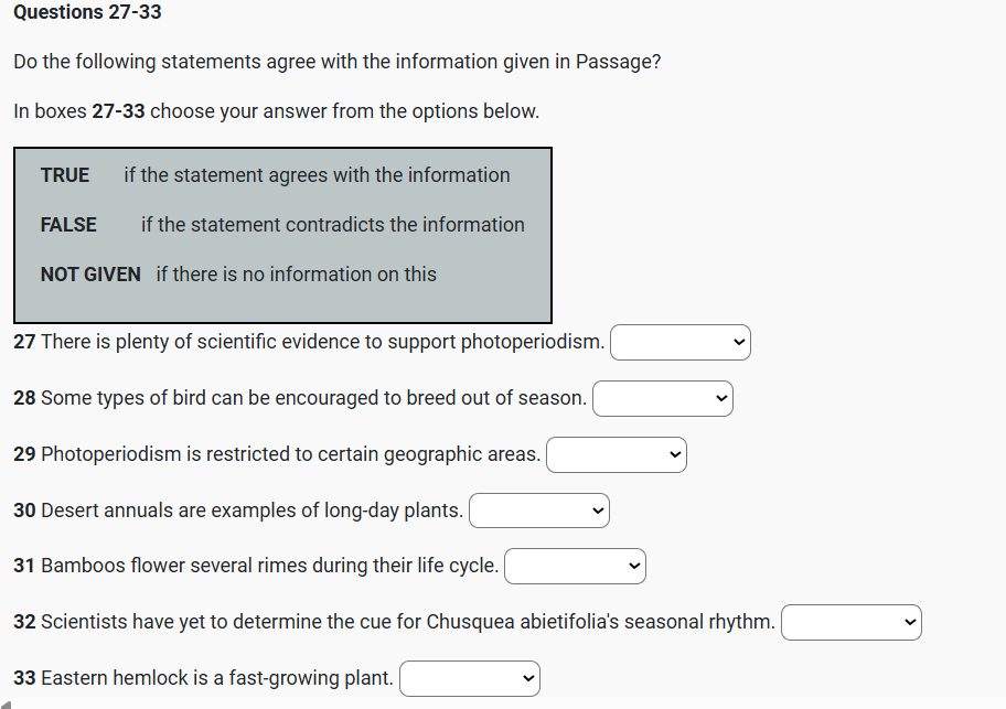 Breeding in most organisms occurs during a part of the year only, and so a reliable cue is needed to trigger breeding behaviour. Day length is an excellent cue, because it provides a perfectly predictable pattern of change within the year. In the temperate zone in spring, Q34 temperatures fluctuate greatly from day to day. but day length increases steadily by a predictable amount. Q27 The seasonal impact of day length on physiological responses is called photoperiodism, and the amount of experimental evidence for this phenomenon is considerableQ28 For example, some species of birds’ breeding can be induced even in midwinter simply by increasing day length artificially (Wolfson 1964). Other examples of photoperiodism occur in plants. A short-day plant flowers when the day is less than a certain critical length. A long-day plant flowers after a certain critical day length is exceeded. In both cases the critical day length differs from species to species. Plants which flower after a period of vegetative growth, regardless of photoperiod, are known as Q35 day-neutral plants.