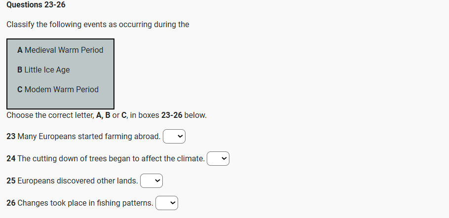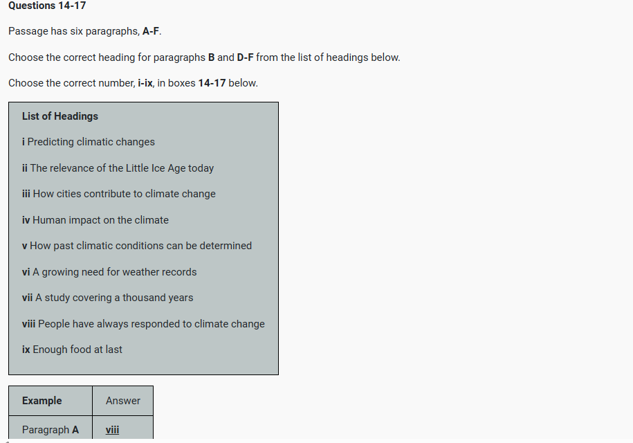 IELTS Reading THE LITTLE ICE AGE reading practice test has 10 questions belongs to History & Environmental Science subject..