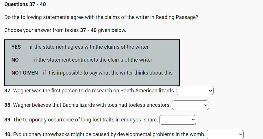 Q37 Wagner was the first person to do research on South American lizards. NOT GIVEN