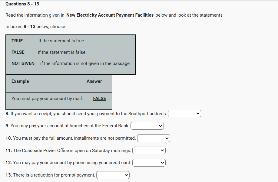 IELTS READING NEW ELECTRICITY ACCOUNT PAYMENT FACILITIES Reading Practice Test has 10 Questions belong to the Services (Utilities & Public Information). |