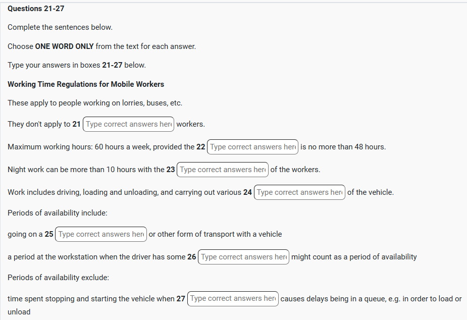 IELTS READING Working Time Regulations for Mobile Workers Reading Practice Test has 10 Questions belongs to the Law / Employment subject.. |