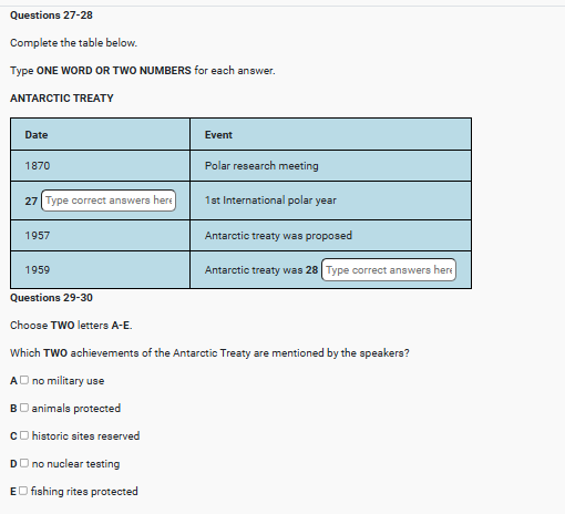 DOCTOR: Q27 Over two years from 1882 to 1883. But it wasn’t until the 1950s that the idea of an international treaty was proposed. And Q28 in 1959 the Treaty was actually signed.