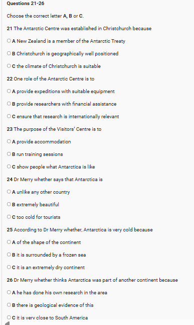 | IELTS listening Antarctic Centre in Christchurch listening practice test has 10 questions belongs to the Academic & Interview about a Scientific Centre. |