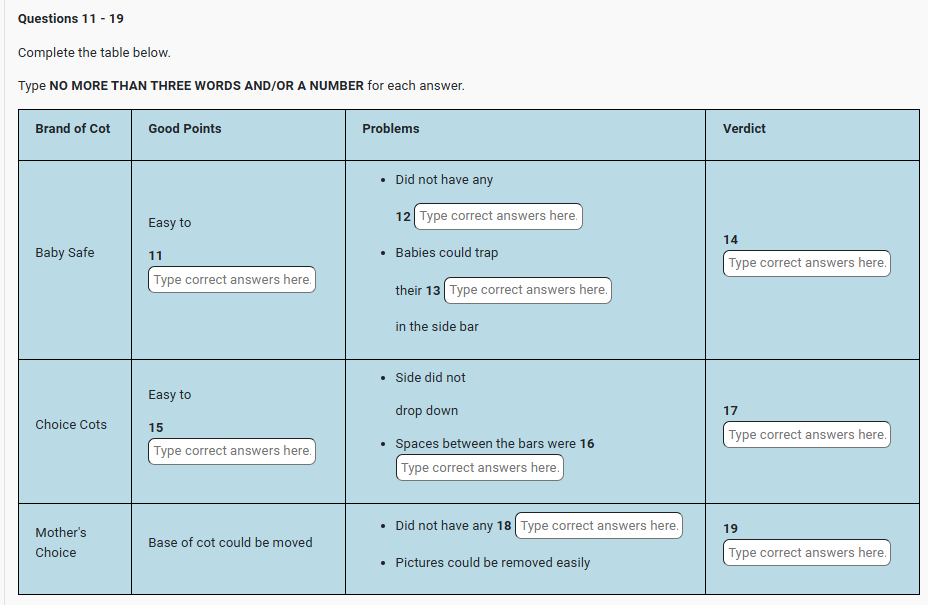 The next cot was by Choice Cots and this time our testers were pleased to find a cot which is simple to Q15 put together – unlike others we looked at. On the minus side, our testers did not like the fact that the side of the cot did not drop down, making it difficult to pick up newborn babies. However, the real problem with this cot was the space between the bars; our testers found they were Q16 too wide and a baby could easily trap his head. We felt this was a real safety hazard and so we have labelled this one Q17 dangerous, I’m afraid.