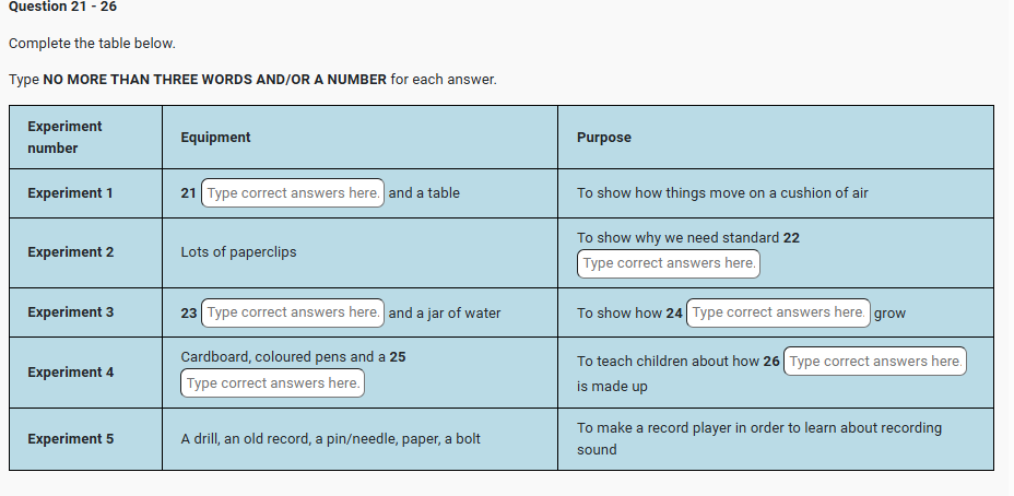 | IELTS listening Experiments for Children listening practice test has 10 questions belongs to the Education / Academic subject. |