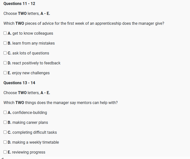 IELTS Listening Induction talk for new Apprentices listening practice test has 10 questions belongs to the Education & Training  subject..