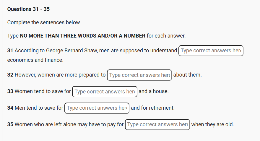 Back in 1928 the British writer George Bernard Shaw wrote in his Intelligent Women’s Guide to Socialism and Capitalism that A man is supposed to understand Q31 politics, economics, and finance and is therefore unwilling to accept essential instruction.’ lie also said, ‘A woman, having fewer pretensions, is far more willing to Q32 learn‘. Now, though these days people might question a lot of the assumptions contained in those statements, recent research does suggest that there are some quite fundamental differences between men and women in their attitudes to economic matters.