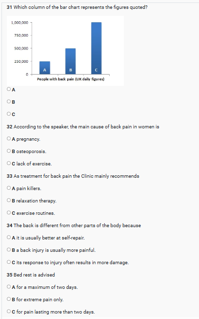 | IELTS listening People with back pain listening practice test has 10 questions belongs to the Medical Advice. |