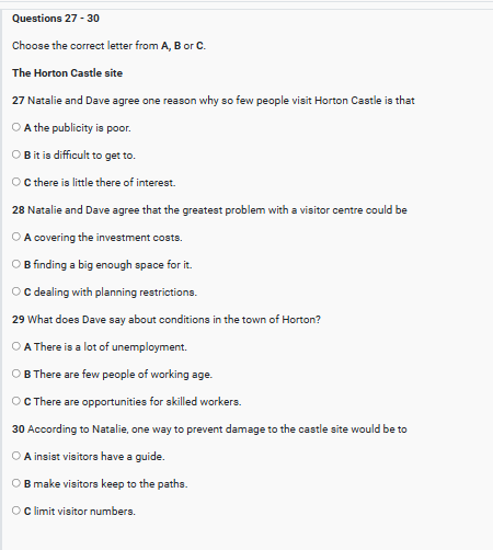 | IELTS listening THE HORTON CASTLE SITE listening practice test has 10 questions belongs to the Historical / Cultural Visit subject. |