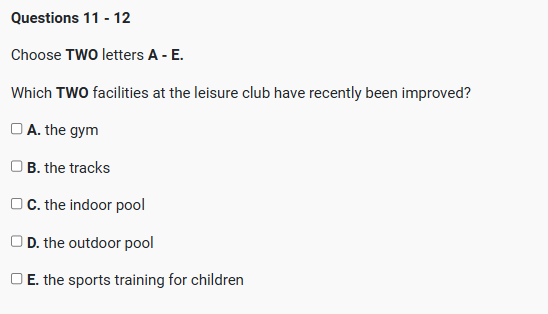 IELTS Listening The leisure club have recently been improved ? listening practice test has 10 questions belongs to the Leisure & Health / Community Facilities subject.