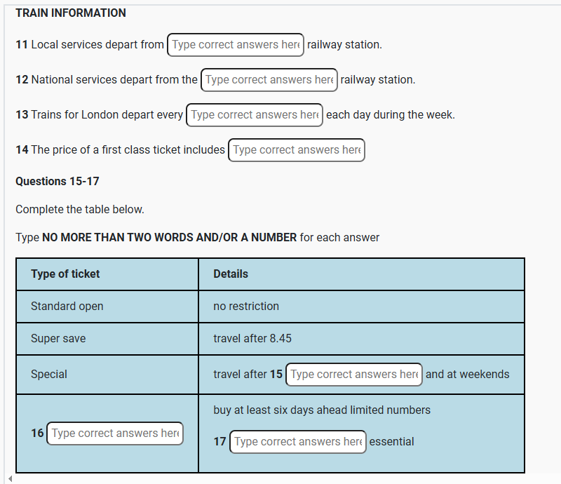 IELTS LISTENING TRAIN INFORMATION listening practice test has 10 questions belongs to the information