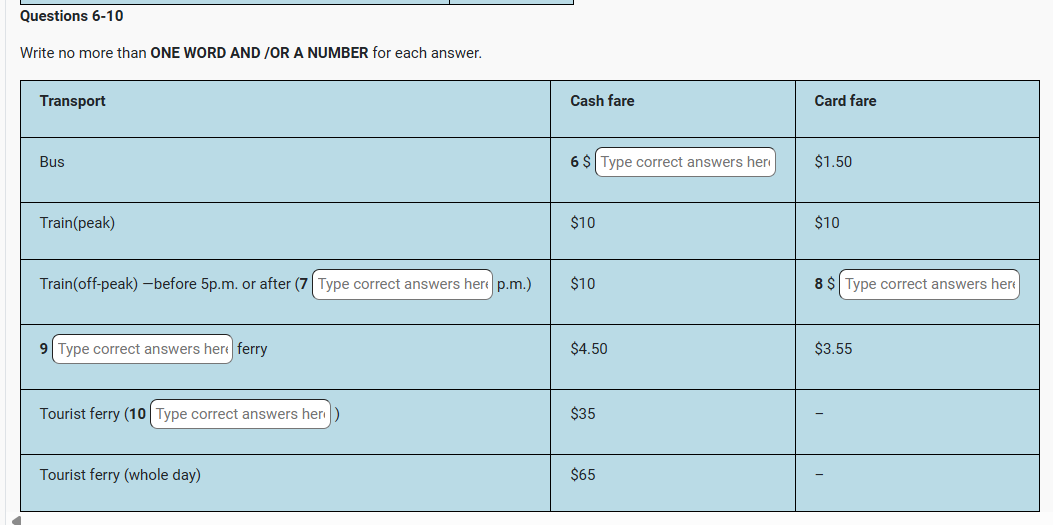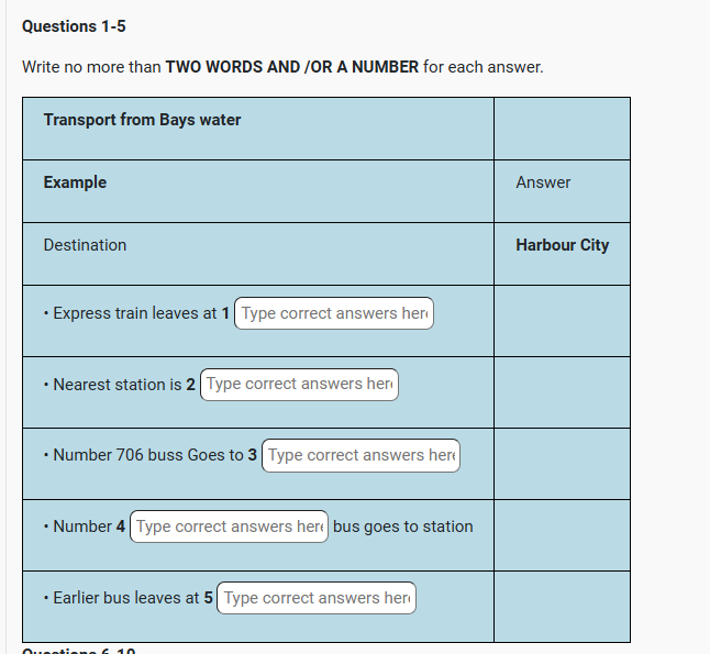 | IELTS listening Transport from Bayswater listening practice test has 10 questions belongs to the Travel & Transport subject. |