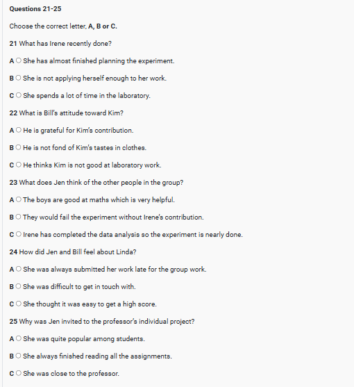 IELTS listening Experiment Discussion listening practice test has 10 questions belongs to the (Student Discussion with Tutor or Classmates.