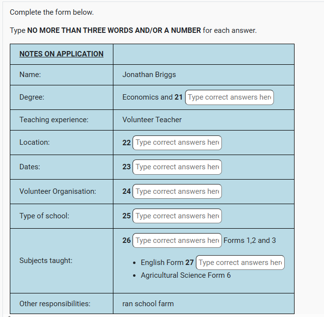 | IELTS listening NOTES ON APPLICATION listening practice test has 10 questions belong to the Work Experience. |