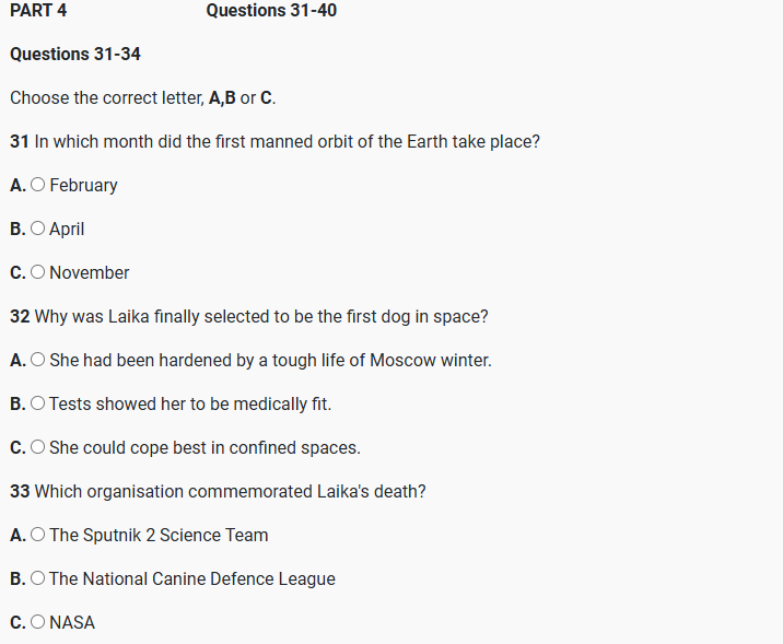 IELTS LISTENING-Animals in Space Exploration S68T4