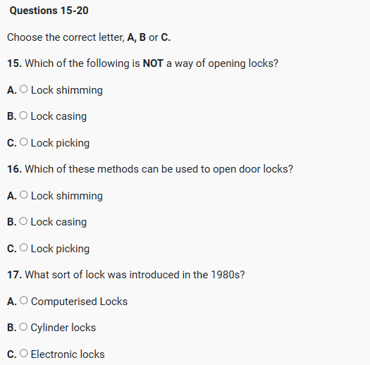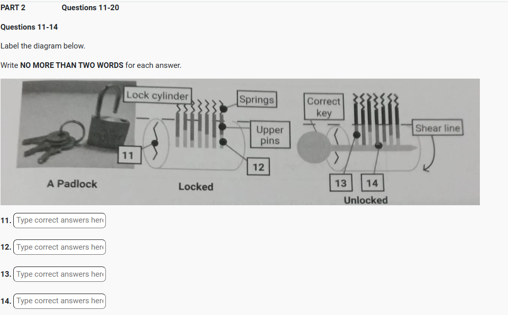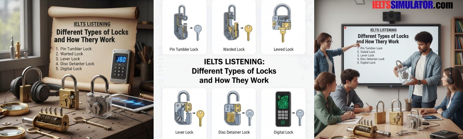 IELTS listening Different Types of Locks and How They Work listening practice test has 10 questions belongs to the Security Systems & Engineering subject..