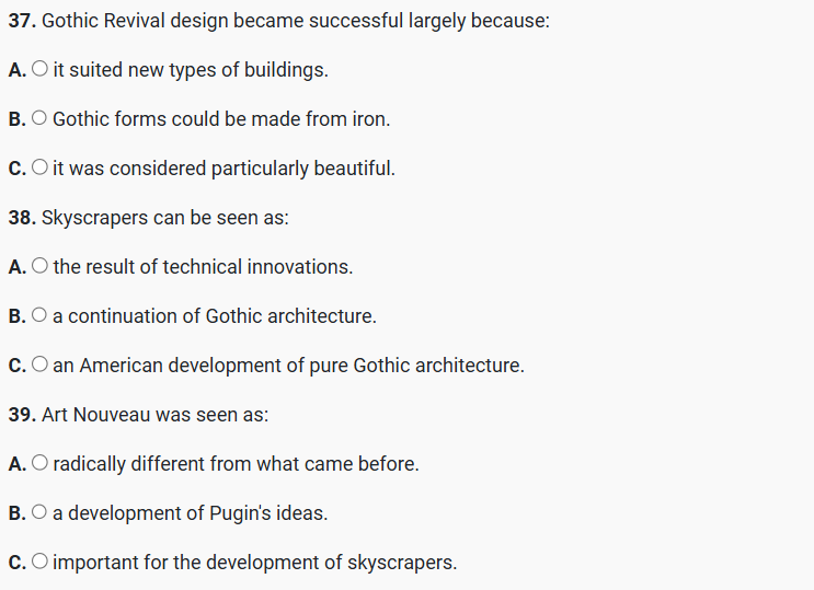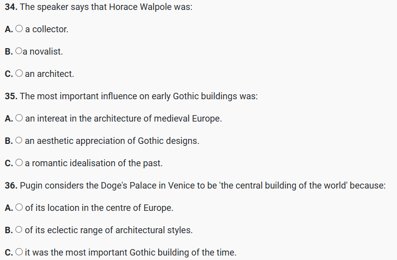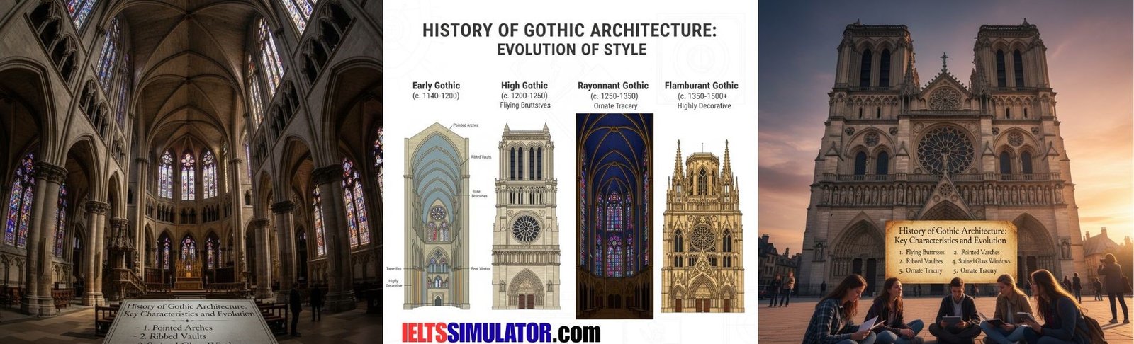 IELTS listening History of Gothic Architecture listening practice test has 10 questions belongs to the Art & Architecture subject..