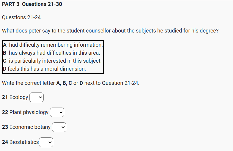 IELTS listening Postgraduate Study Discussion listening practice test has 10 questions belongs to the Career Guidance & Academic Counselling subject..