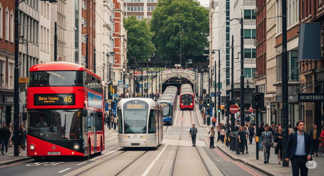 B. In the UK, travel times to work had been stable for at least six centuries, with people avoiding situations that required them to spend more than half an hour travelling to work. Trains and cars initially allowed people to live at greater distances without taking longer to reach their destination. Q2 However, public infrastructure did not keep pace with urban sprawl, causing massive congestion problems which now make commuting times far higher.